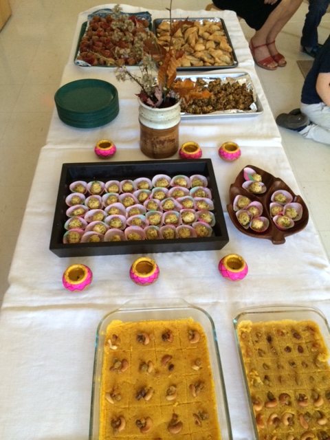 So it was my pleasure to spend the morning at Montessori along with a couple of other indian families to bring in the spirit of Deepavali, the festival of lights, into the classroom. Though the students had already done their bit – by painting diyas! what a beautiful sight walking into the school. Making the coconut ladoos was work – but seeing them devoured by little angels was awesome.